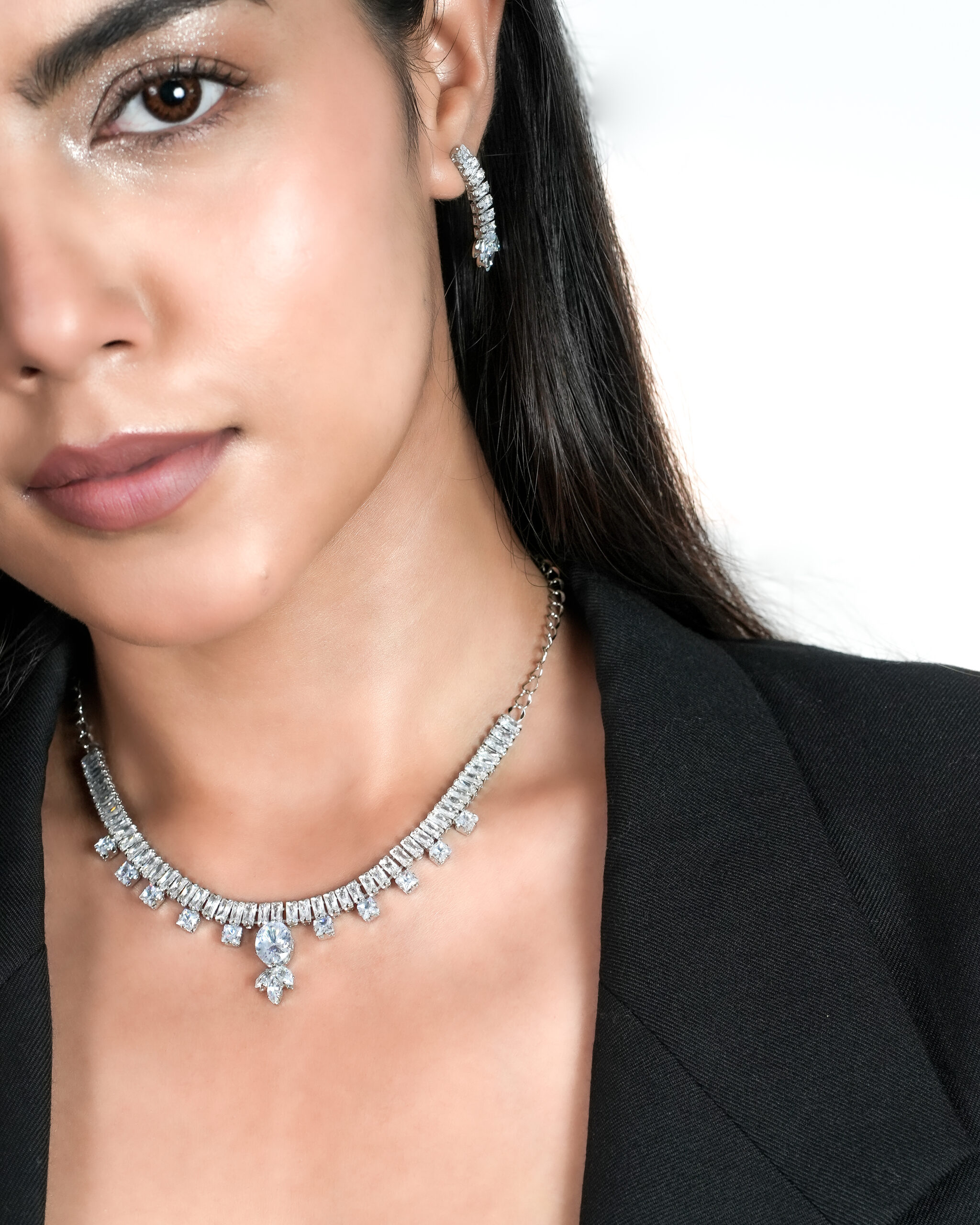 The Ivory Silver Blue Set is truly a masterpiece, guaranteed to elevate your outfit to a perfect ten! This set, including both earrings and a necklace, is crafted with Swarovski Diamonds to enhance your beauty and provide a stunning look. Every time you adorn this exquisite neckpiece, you’ll be turning heads and leaving a lasting impression. From sangeets to receptions, this beauty is an absolute must-have you can’t afford to miss out on!